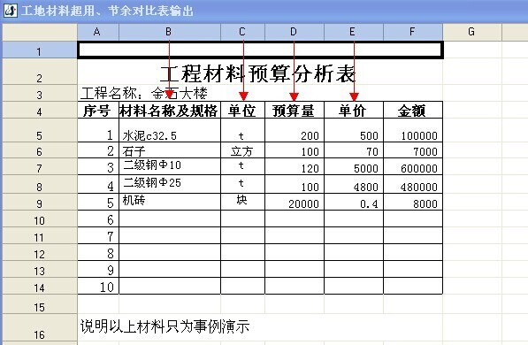 注:以上只是演示了導(dǎo)入預(yù)算的全過程,在實(shí)踐當(dāng)中還是建議用戶只將大材料用手工【添加】的方式建立預(yù)算單,因?yàn)榱阈堑牟牧厦Q多而且繁雜,如果也要將零星材料從預(yù)算中導(dǎo)入、再做一一對應(yīng),這樣勢必給用戶帶來很大的工作量。況且零星材料也不好準(zhǔn)確估算出實(shí)際用量。