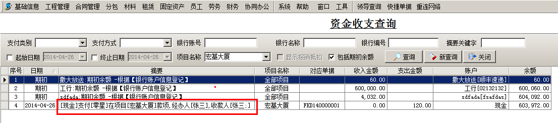 下面是最終的資金流水,看摘要我們可以得知:向[零星]單位付款,收款人是張三,如下圖: