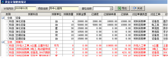 其中黑色明細代表的是,資金計劃表中的內(nèi)容,而紅色代表的是預(yù)算外的。