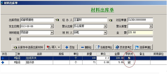 4. 【材料出庫(kù)單】出庫(kù)單明細(xì)中所有的材料都進(jìn)入出庫(kù)單中選擇出庫(kù)項(xiàng)目的成本。