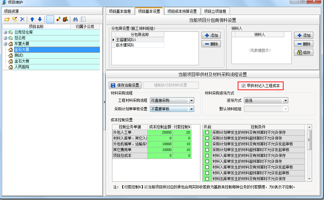 勾選好之后當(dāng)累計材料甲供單金額超過甲供材料約定金額時,則不能保存。如下圖: