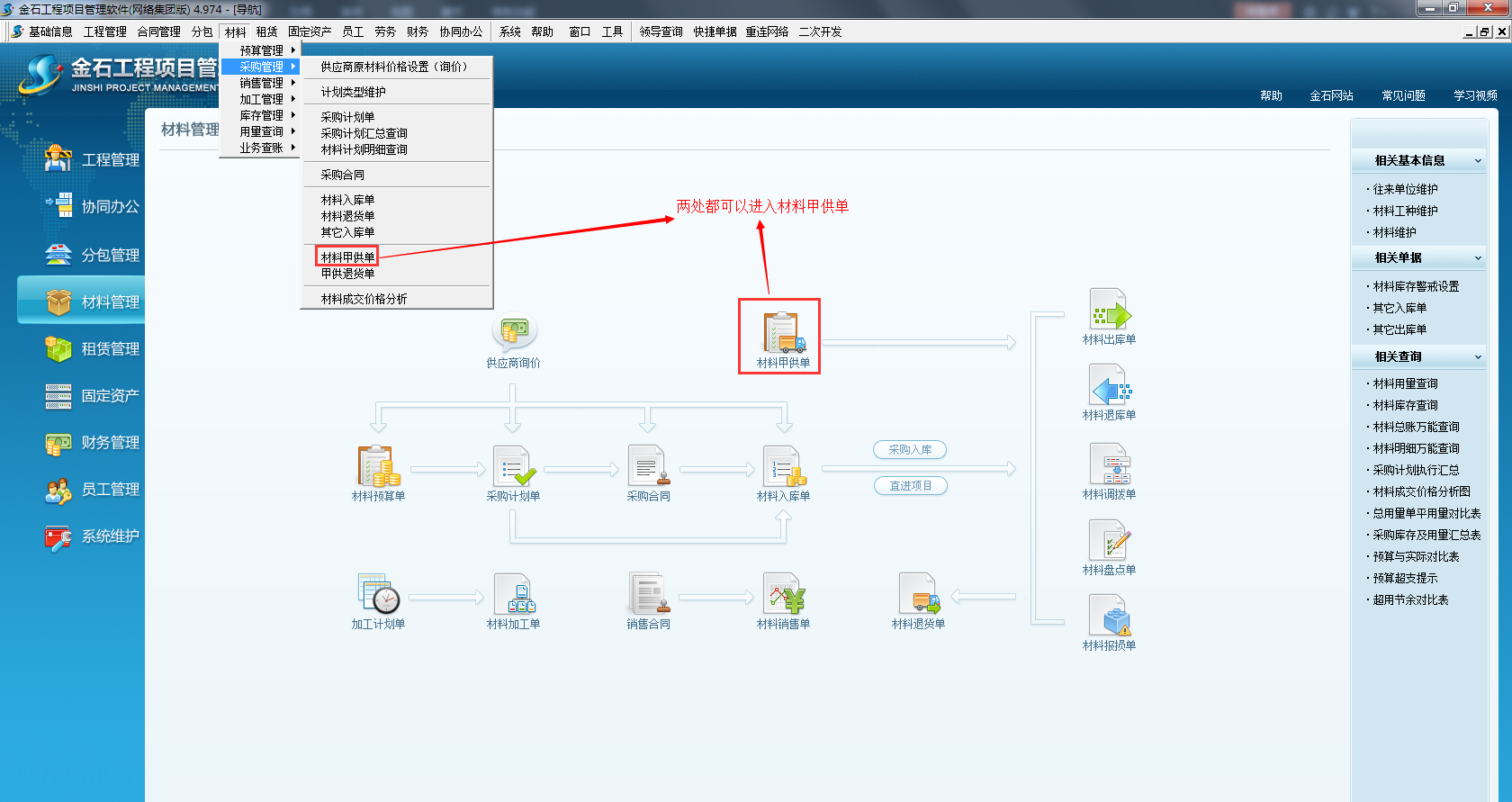 工程甲供材料管理所涉及到的單據(jù)有材料甲供單和承包合同。 【材料甲供單】是登記當(dāng)時發(fā)生項目的甲供供應(yīng)材料的單據(jù)。錄入本單據(jù)前,需先錄入要用到基礎(chǔ)信息中的【材料維護】、【項目維護】(包括【庫房信息】、【領(lǐng)料班組信息】)、【往來單位維護】。