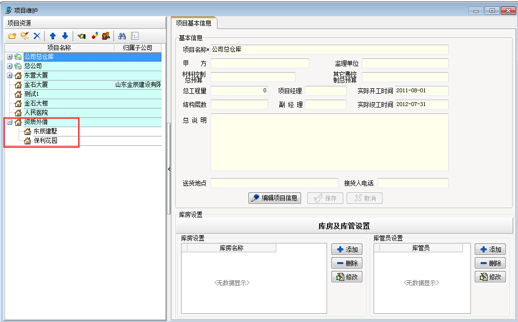 情況分析: 在工程項目資質(zhì)掛靠管理中由于本工程款資金流向是經(jīng)過我公司的,正規(guī)的管理辦法是在【項目維護】中建立一個項目來管理,如下圖: