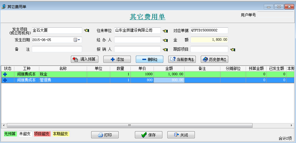 在工程項目資質(zhì)掛靠管理中因為借用乙方B的資質(zhì)或者乙方B代開發(fā)票需要向乙方B支付管理費和稅金。這時我們需要做其他費用單在做付款申請單或者付款單,具體操作如下:
