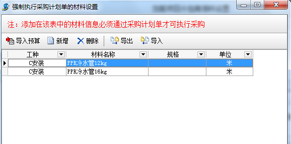 在工程項(xiàng)目管理系統(tǒng)中新建采購計(jì)劃單時(shí),添加材料內(nèi)容選擇從預(yù)算中調(diào)入,如下圖