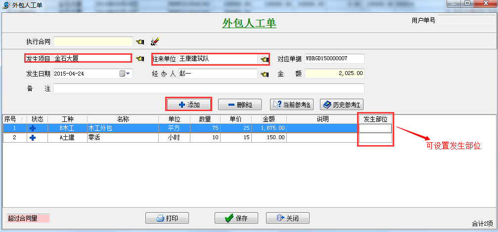 工程項(xiàng)目分包成本是根據(jù)外包人工單中項(xiàng)目名稱自動(dòng)匯總統(tǒng)計(jì)到該項(xiàng)目。