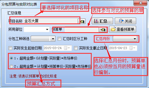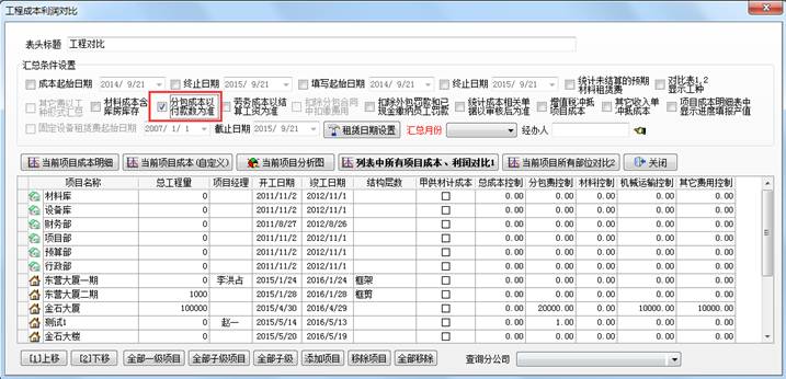 (3)【分包預(yù)算與實(shí)際對(duì)比表】是項(xiàng)目的分包預(yù)算單與實(shí)際發(fā)生的分包進(jìn)行量?jī)r(jià)的對(duì)比。對(duì)比窗口界面設(shè)置如下