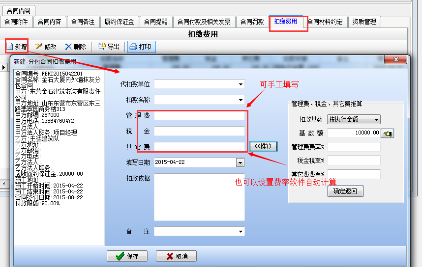 在工程項(xiàng)目分包管理中填寫(xiě)完合同罰款后會(huì)在待付款中自動(dòng)扣除。
