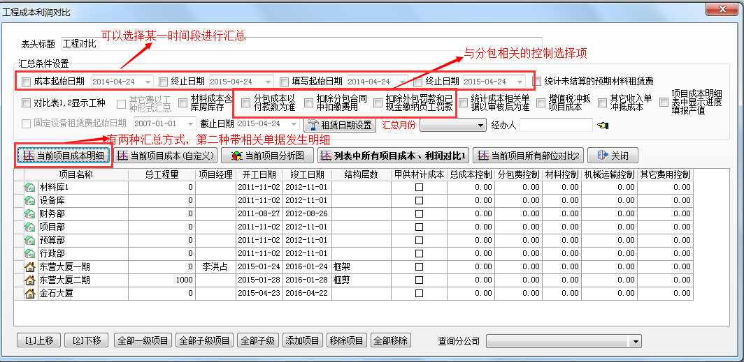 查詢成本方法:在【工程管理】模塊?【項(xiàng)目成本利潤(rùn)】選好匯總項(xiàng)目生成項(xiàng)目成本列表。如下圖