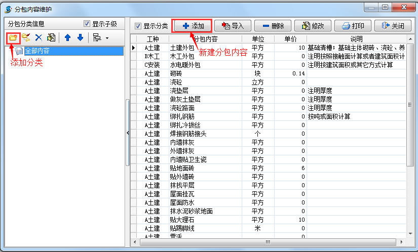 在做工程項(xiàng)目分包管理之前要做好往來(lái)單位維護(hù),人工工種維護(hù),分包內(nèi)容維護(hù),罰款分類維護(hù),分包預(yù)算單維護(hù)。