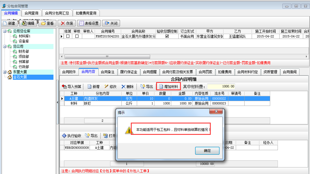 其中在包工包料而且材料單獨(dú)結(jié)算的情況下,可設(shè)置單獨(dú)的材料費(fèi)。
