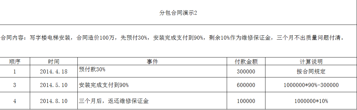付款完成后,這樣我們就完成了這個(gè)單價(jià)分包合同。