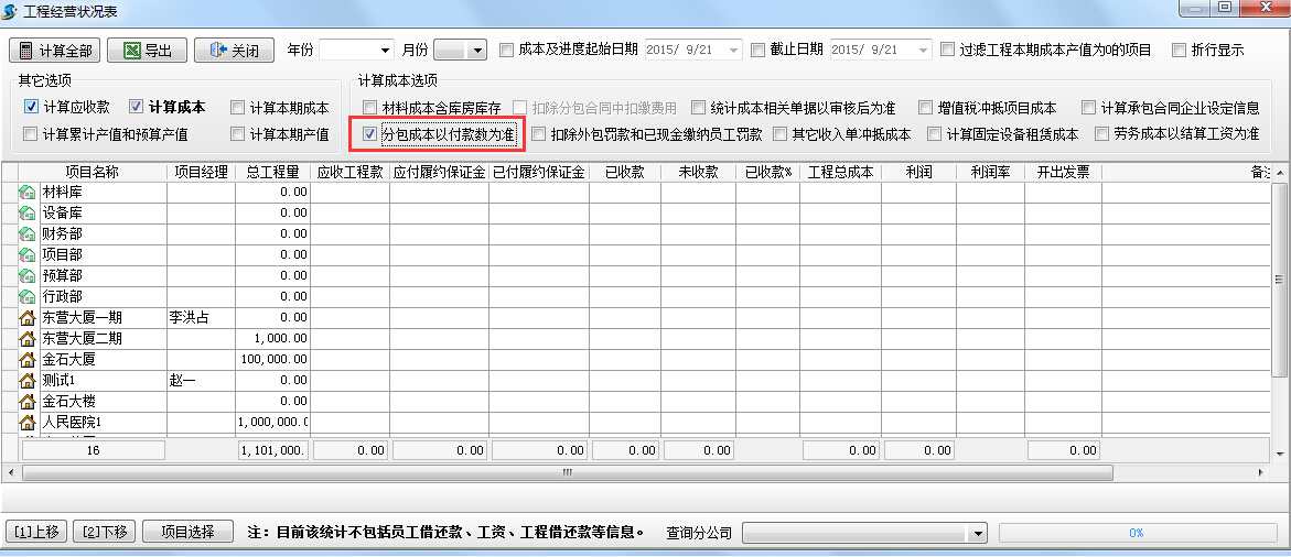 如上圖設(shè)置項(xiàng)目為金石大廈后查詢出的結(jié)果。