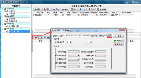 所有部位依此填寫。或者使用“導(dǎo)入”功能,把清單依次導(dǎo)入。