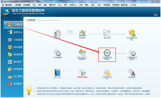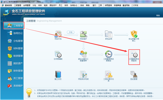 進(jìn)入系統(tǒng)的“工程管理”模塊,點(diǎn)擊“工程量清單進(jìn)度查詢”,如圖: