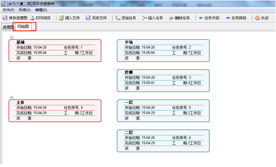 進(jìn)入系統(tǒng)的“項(xiàng)目管理”模塊,點(diǎn)擊“項(xiàng)目任務(wù)圖編制”,點(diǎn)擊“新建”按鈕保存,(便于后期進(jìn)行工程項(xiàng)目施工進(jìn)度的管理)如圖: