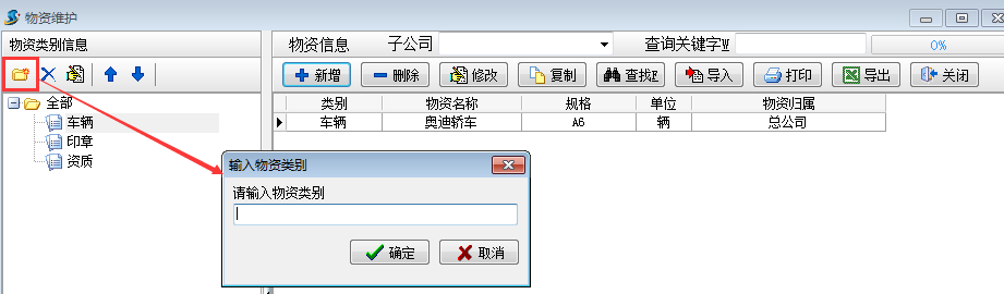 物資類(lèi)別信息編輯工具欄是用來(lái)編輯物資分類(lèi)。
