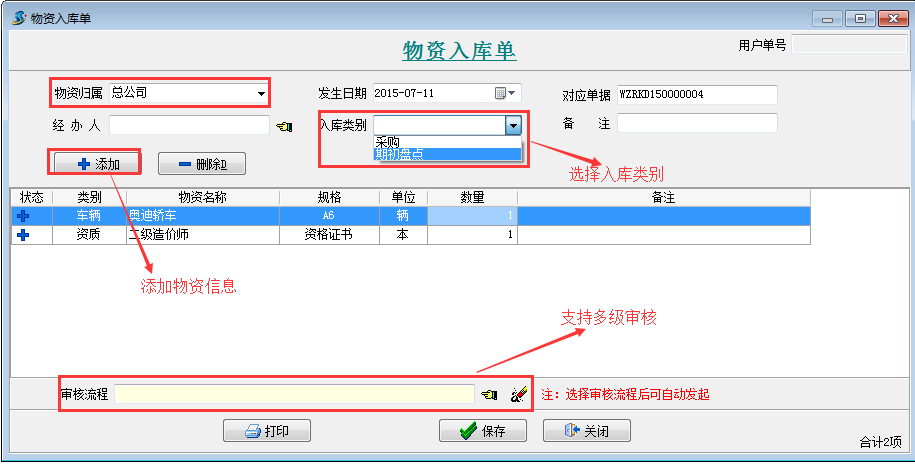 2.物資入庫(kù)單