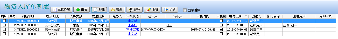 保存后返回到【物資入庫(kù)單列表】中,如下圖: