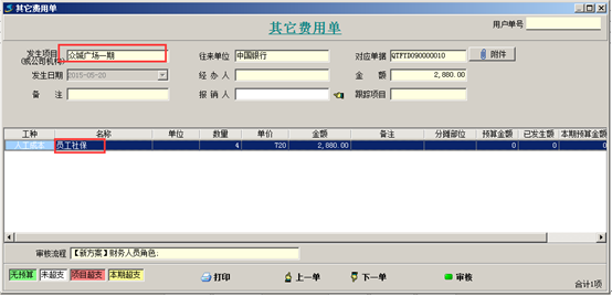 工程項目管理軟件中如果公司將“社保金額”以及員工“個人所得稅”計入項目成本,則須在系統(tǒng)中將“社保金額”(包括員工自己繳納以及公司繳納的)以及“個人所得稅”做其他費用單,計入項目成本中。如圖: