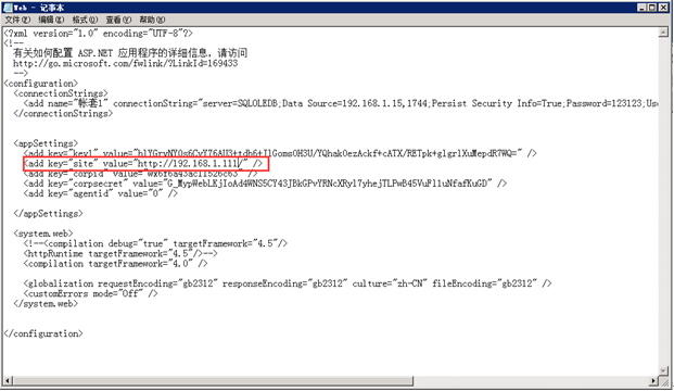 6. 設(shè)置web.conf 文件.IP地址、數(shù)據(jù)庫(kù)名稱、數(shù)據(jù)密碼、key字段等。如圖: