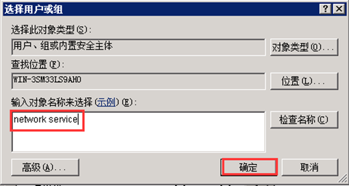 第五步,同樣的方法添加對(duì)象名“network service”并開放“修改”權(quán)限。如圖:
