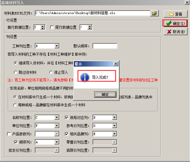 規(guī)則選擇好并且列名對(duì)應(yīng)完成之后,則導(dǎo)入信息。導(dǎo)入完成系統(tǒng)給出對(duì)應(yīng)提示。如圖: