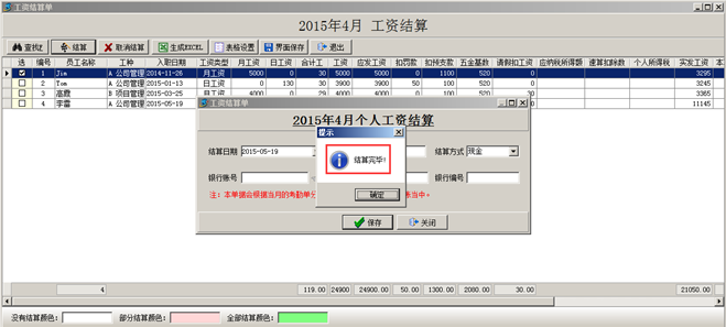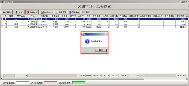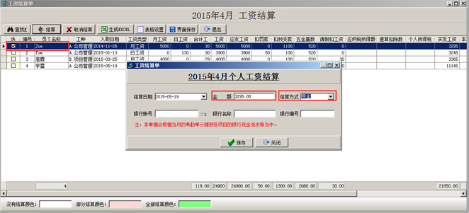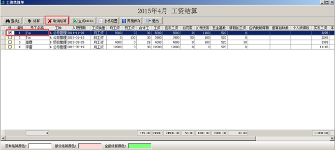 注:如果員工的工資只做了部分結(jié)算,則會顯示對應(yīng)的“部分結(jié)算”的顏色。