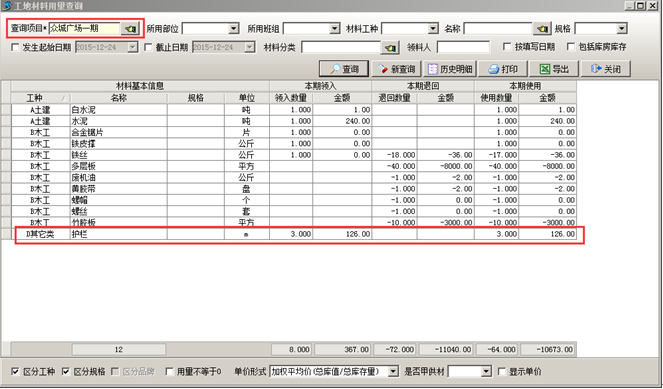 工程管理軟件中“材料調(diào)撥單”添加完成之后材料調(diào)撥到項目上,則可在材料用量查詢以及項目成本中查詢到對應(yīng)的成本(如果是調(diào)撥到項目庫房則可在庫房中查到對應(yīng)庫存)。