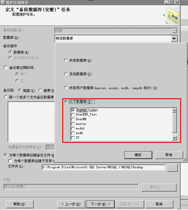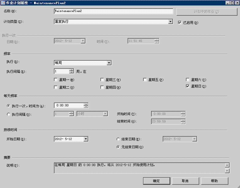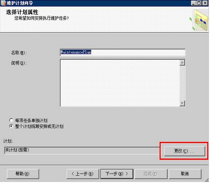 點(diǎn)擊【更改】按鈕,彈出如圖所示【計(jì)劃作業(yè)屬性】對(duì)話框。在該對(duì)話框里可以設(shè)置備份數(shù)據(jù)庫的時(shí)間及頻率,設(shè)置完畢后單擊【確定】按鈕回到【選擇計(jì)劃屬性】窗口,再單擊【下一步】按鈕。