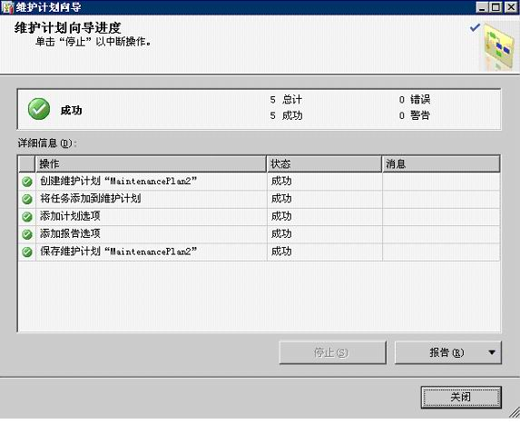 12、創(chuàng)建完維護(hù)計(jì)劃后,出現(xiàn)以下【維護(hù)計(jì)劃向?qū)нM(jìn)度】畫面,這樣就完成了自動(dòng)備份的操作。