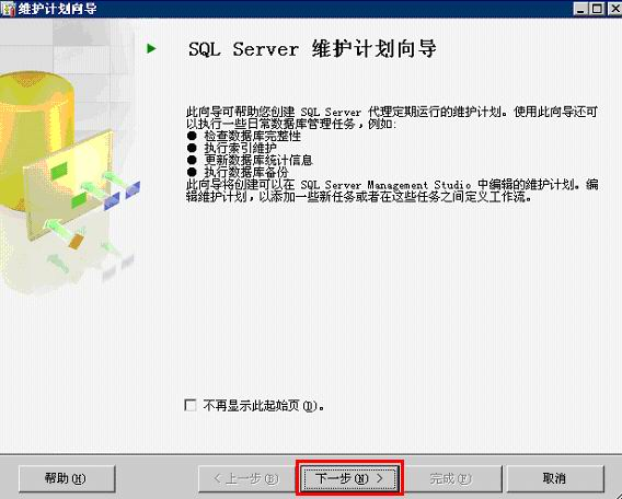 5、彈出如圖所示的【維護(hù)計(jì)劃向?qū)А繉?duì)話框,單擊【下一步】按鈕;