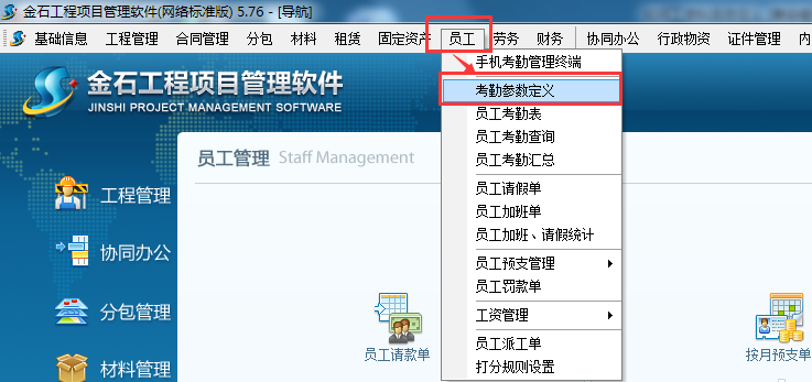二、 菜單欄→員工→工資管理→工資參數(shù)定義