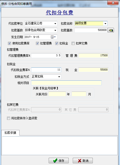 ①“分包合同”扣繳費(fèi)用,扣管理費(fèi)、扣銷項(xiàng)、進(jìn)項(xiàng)稅