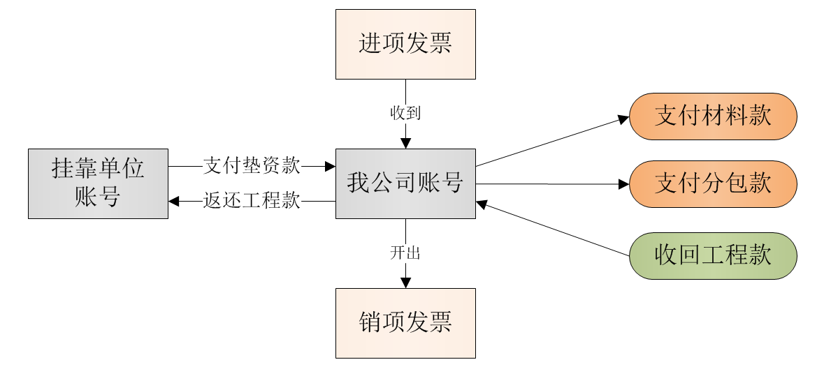 1、由于“營改增”后,為實現(xiàn)進項發(fā)票的沖抵、我們會要求掛靠單位給我們提供進項發(fā)票,他所購買的材料款、收到的工程款必須走我方的公司賬戶。材料供應商開具的發(fā)票抬頭也必須是我方的單位名稱,這樣就使得“發(fā)票”、“付款”兩者一致。