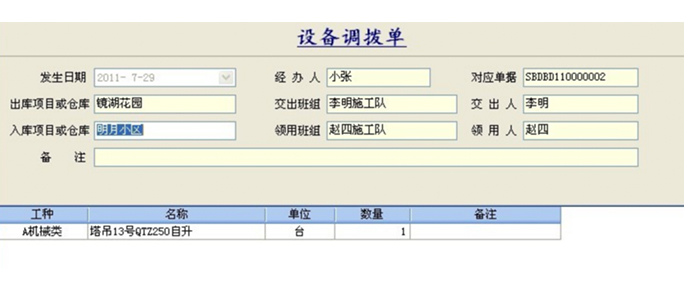 設(shè)備調(diào)撥單是表現(xiàn)設(shè)備流動的重要依據(jù),如果不想出現(xiàn)設(shè)備查無所蹤的情況,企業(yè)一定要注意重視工程管理系統(tǒng)中設(shè)備調(diào)撥單的運用。