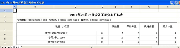 除了設(shè)備調(diào)撥單列表之外,系統(tǒng)中還有更全面的設(shè)備工地分布表??梢苑浅V庇^的看到企業(yè)的固定資產(chǎn)在各個工地的分布情況。