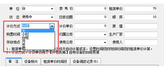 在我們之前于工程管理系統(tǒng)中填報設(shè)備的基礎(chǔ)信息時,有一項是填報計價方式和單價,這里是計算成本的基礎(chǔ),一定要填報好。如果不希望計算成本,那么請在租賃單價中填0。