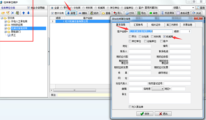 所謂的往來單位維護,主要將機械設(shè)備的供貨商信息錄入系統(tǒng),方便以后進行維保、二次采購等操作。操作界面如下: