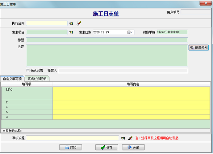 施工日志是施工方用于記錄工程項(xiàng)目真實(shí)情況,反饋一線信息的重要資料,也是施工管理軟件中進(jìn)度來源,金石軟件的施工日志模塊為每個(gè)任務(wù)提供明細(xì)反饋,并根據(jù)工地的實(shí)際情況,設(shè)計(jì)了語音識(shí)別功能,用戶可以通過語音簡述項(xiàng)目情況,語音自動(dòng)識(shí)別為文字,減輕了工作量和工作難度。