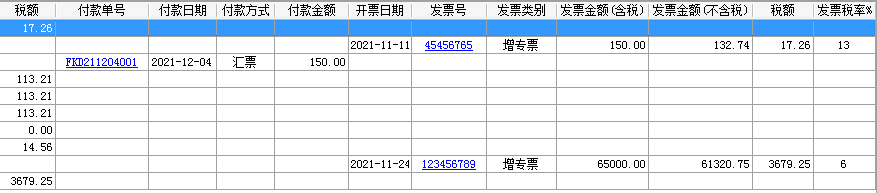 6、發(fā)票類別:根據發(fā)票單中‘發(fā)票類別’拆分:類型為”增值稅專用發(fā)票“顯示為”增專票“;.非增值稅專用發(fā)票的發(fā)票類型,按單據原發(fā)票類型顯示;其中付款單和驗收單顯示空白。