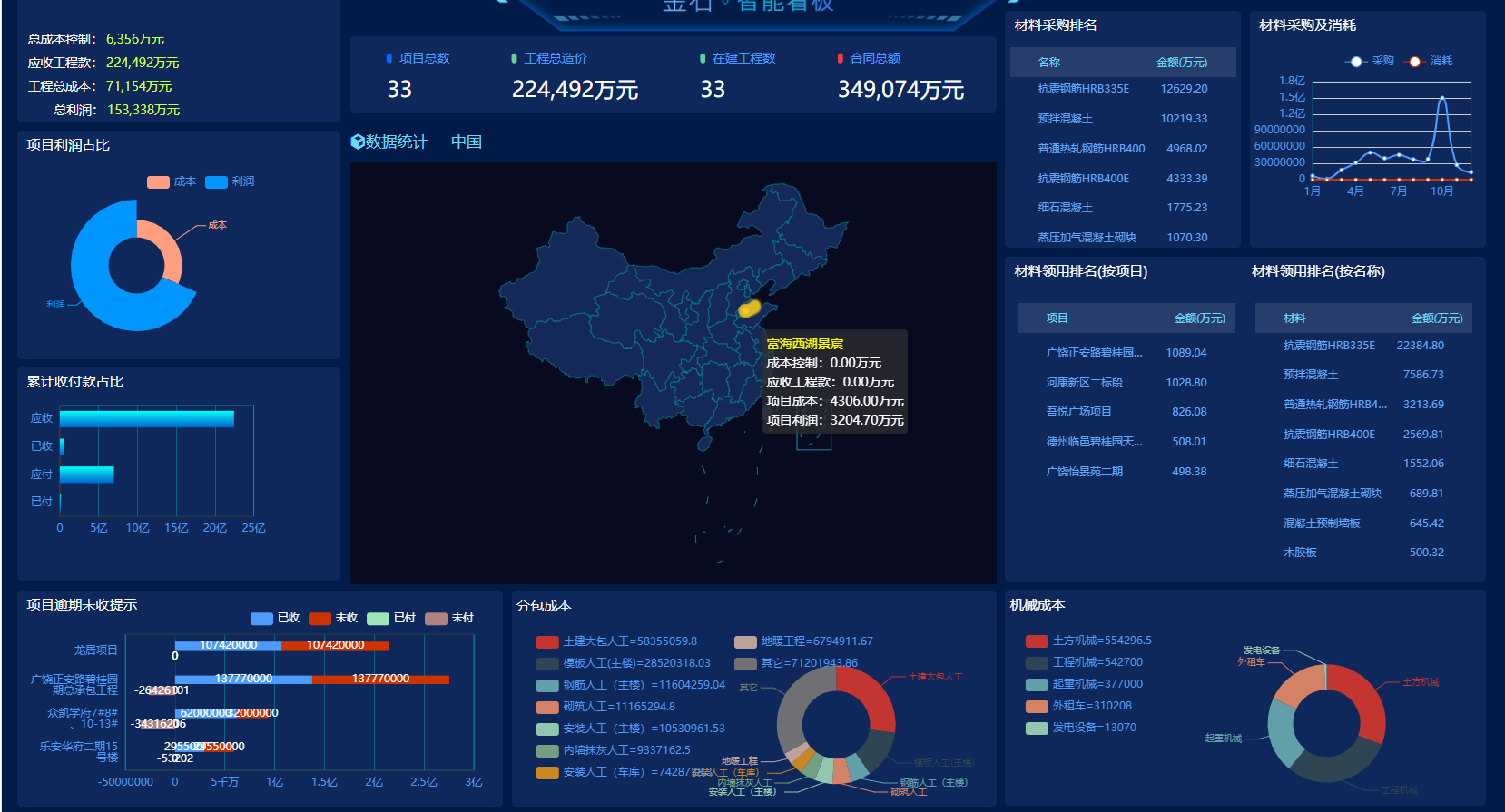 所涉及的材料成本、分包成本、租賃成本、固定資本和其他雜費(fèi),包括預(yù)算成本、計(jì)劃成本、計(jì)劃成本等全過(guò)程的成本計(jì)算和控制系統(tǒng)一次解決、最后,計(jì)算資金的靜態(tài)管理規(guī)模,實(shí)施項(xiàng)目預(yù)算和項(xiàng)目進(jìn)度計(jì)劃監(jiān)督與控制列入實(shí)時(shí)的管理路軌,使公司及項(xiàng)目各職能部門可隨時(shí)監(jiān)管項(xiàng)目的進(jìn)展及預(yù)算執(zhí)行情況,以做出決策。