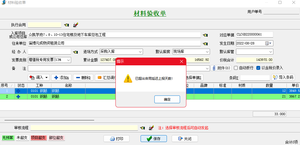 我們以材料采購(gòu)單為例,例如當(dāng)前日期為2022年9月3日,設(shè)置延遲上報(bào)天數(shù)為5天,那么系統(tǒng)只允許保存發(fā)生日期為2022年8月29號(hào)之后的單據(jù)(包括29號(hào)),2022年8月29號(hào)之前的單據(jù)不允許保存。