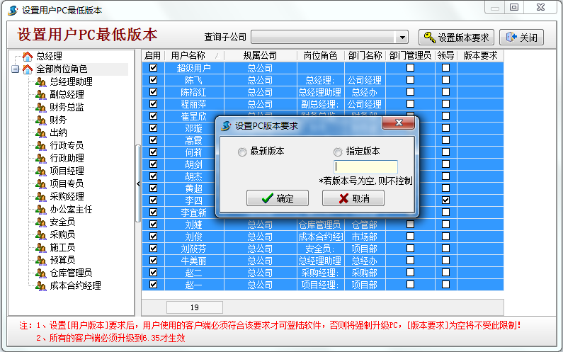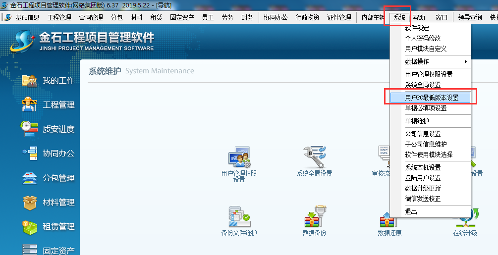 在使用金石工程項目管理軟件的過程中經(jīng)常會碰到有的同事升級了較新版本的新功能,其他同事還在使用老版本不能更好的體驗金石軟件新功能,在6.35版本中我們對此進(jìn)行了限制,可要求所有用戶均升級最新版本或指定的版本,否則系統(tǒng)將將強(qiáng)制升級,操作流程如下: