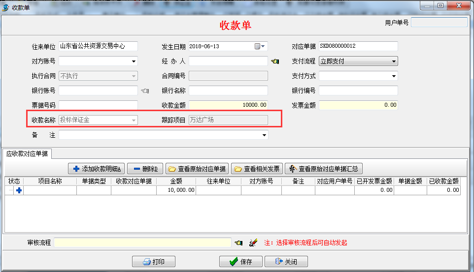 交納投標保證金時填寫“付款申請單”或者“付款單”,(如果填寫的是付款申請單則在付款申請單審核通過之后進行付款),如圖: