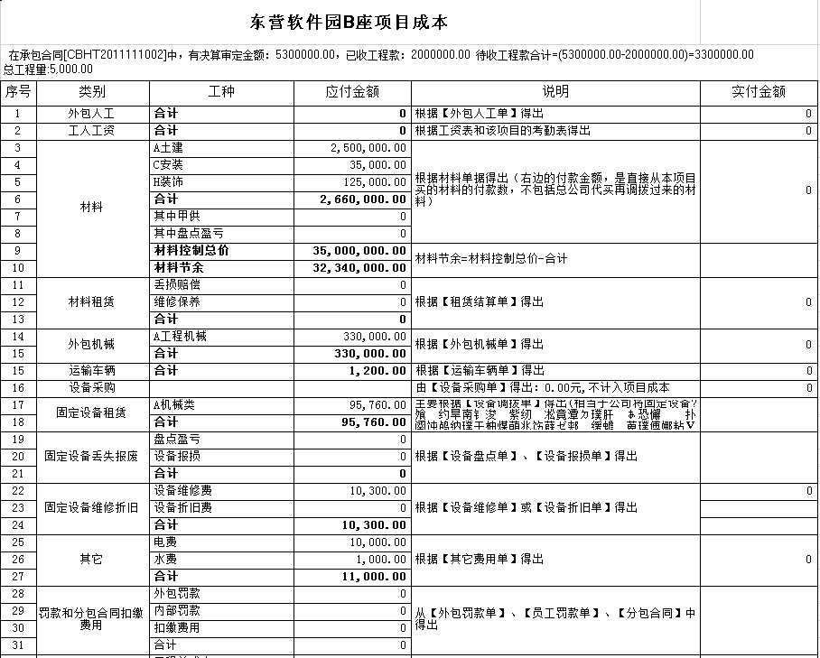工程管理成本統(tǒng)計(jì)(成本、利潤、產(chǎn)值)