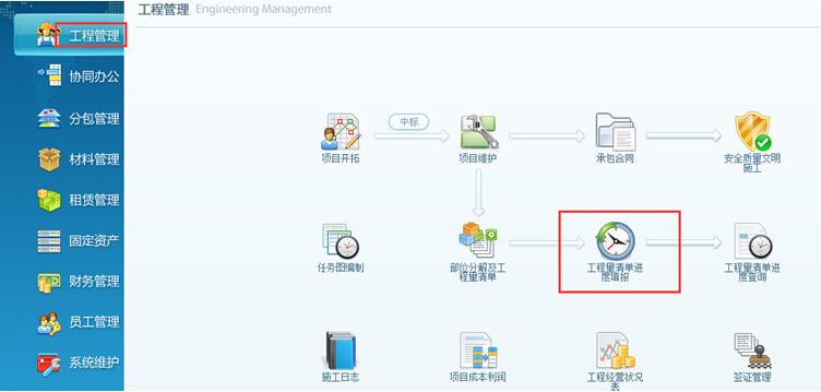 1、在施工過(guò)程中,要在工程項(xiàng)目管理系統(tǒng)中跟隨項(xiàng)目進(jìn)度做項(xiàng)目進(jìn)度填報(bào)。工程量清單編輯時(shí),填報(bào)方式為“進(jìn)度填報(bào)單”的工程可接做“進(jìn)度填報(bào)單”;(1)“進(jìn)度填報(bào)單”通過(guò)-工程量清單進(jìn)度填報(bào),如圖: