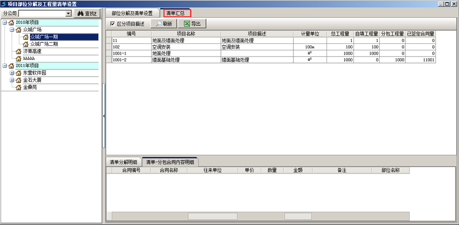 三、工程量清單匯總以及工程量進(jìn)度查詢(xún)