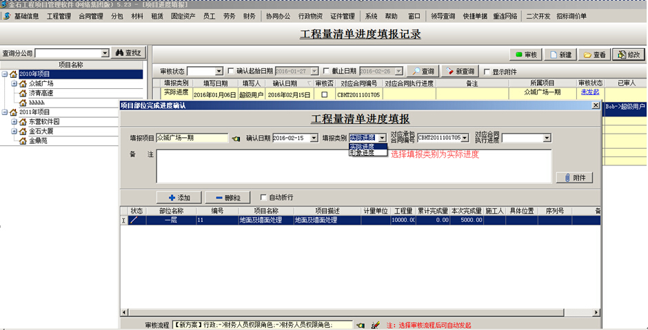 項(xiàng)目進(jìn)度填報(bào)方式分為:形象進(jìn)度填報(bào)(上報(bào)給甲方的進(jìn)度)和實(shí)際進(jìn)度填報(bào),兩者的上報(bào)量可以不一樣,形象進(jìn)度填報(bào)主要是和甲方結(jié)算使用,該填報(bào)會(huì)體現(xiàn)的【承包合同】應(yīng)收款中。實(shí)際進(jìn)度填報(bào)主要是體現(xiàn)實(shí)際完成量,該填報(bào)得出的實(shí)際產(chǎn)值會(huì)體現(xiàn)到【項(xiàng)目成本利潤表】、【工程經(jīng)營狀況表】和成本發(fā)生成本進(jìn)行比較。注:在當(dāng)今社會(huì)為提高企業(yè)收益,工程實(shí)際施工量(即分包合同簽訂量)會(huì)小于向甲方上報(bào)的形象進(jìn)度量,該情況主要與現(xiàn)場(chǎng)項(xiàng)目經(jīng)理水平有很大關(guān)系!