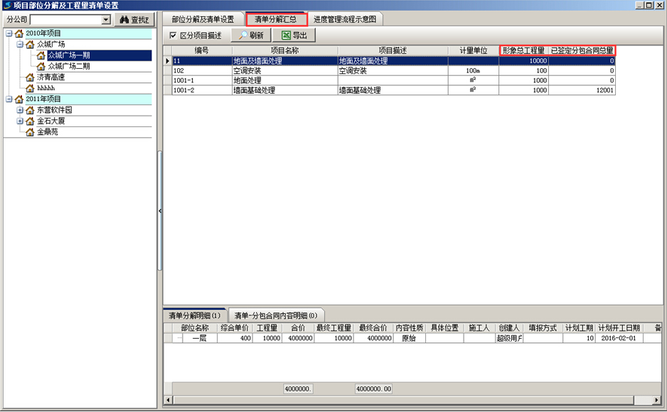 三、工程量清單匯總以及工程量進(jìn)度查詢